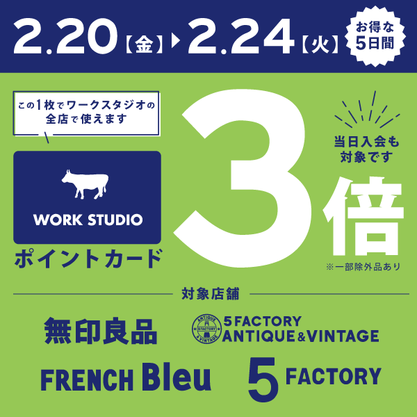 この機会にぜひ、WORK STUDIOポイントカードをご利用ください。