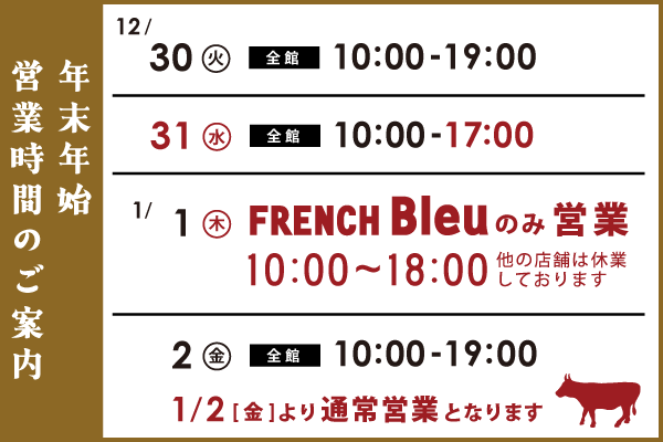 営業時間 10:00 - 19:00年中無休 ※元日を除く